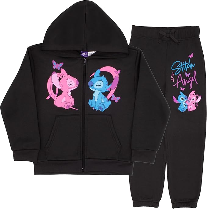 Lilo & Stitch Girl's 2-Piece Fleece Set - Stitch Hooded Sweatshirt and Joggers Bundle for Kids