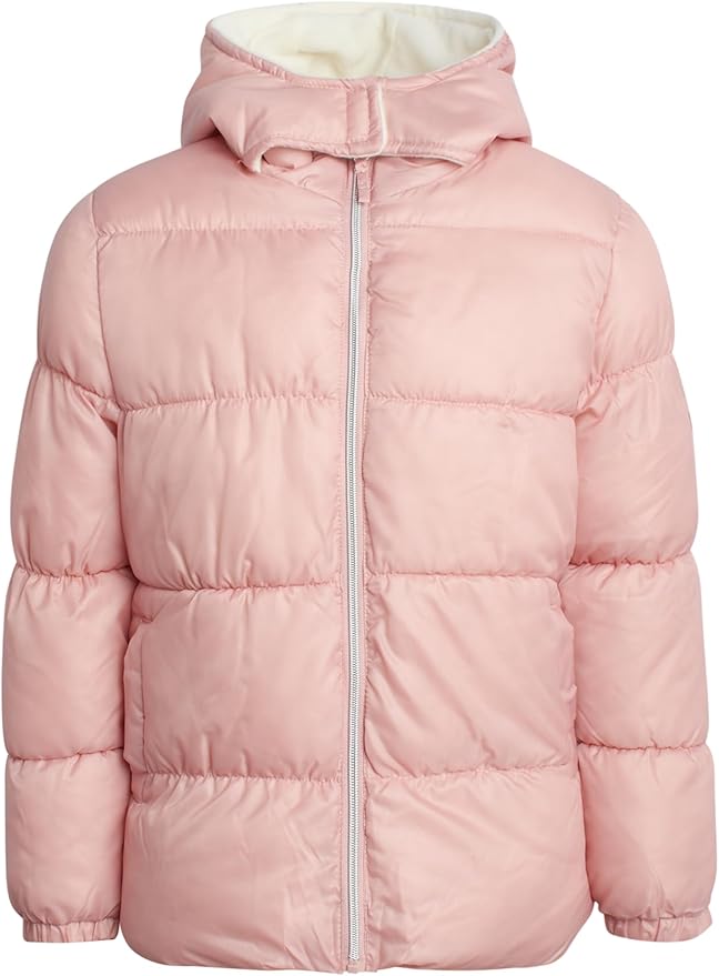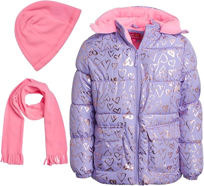 Girls Winter Coat Fleece Lined Bubble Puffer Jacket, Scarf, Beanie (4-16)