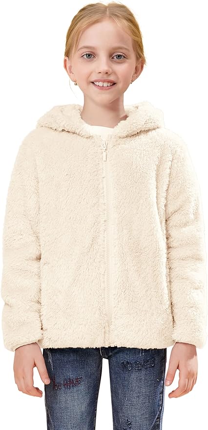 Girls Fleece Jacket Sherpa Fall Winter Full Zip Fuzzy Coat Outwear with Pockets