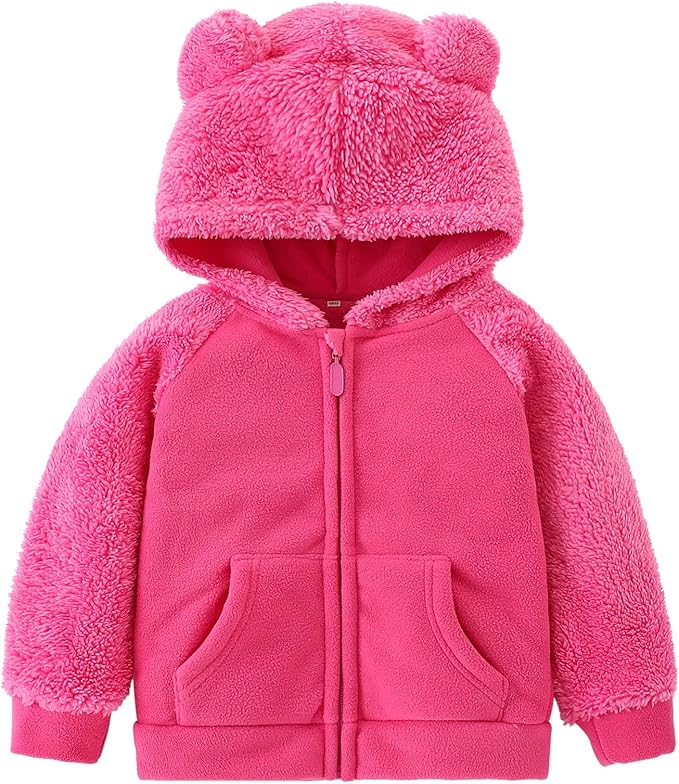 Toddler Girls Boys Fleece Hoody Jacket Zip Up Teddy Coat Warm Winter Outwear