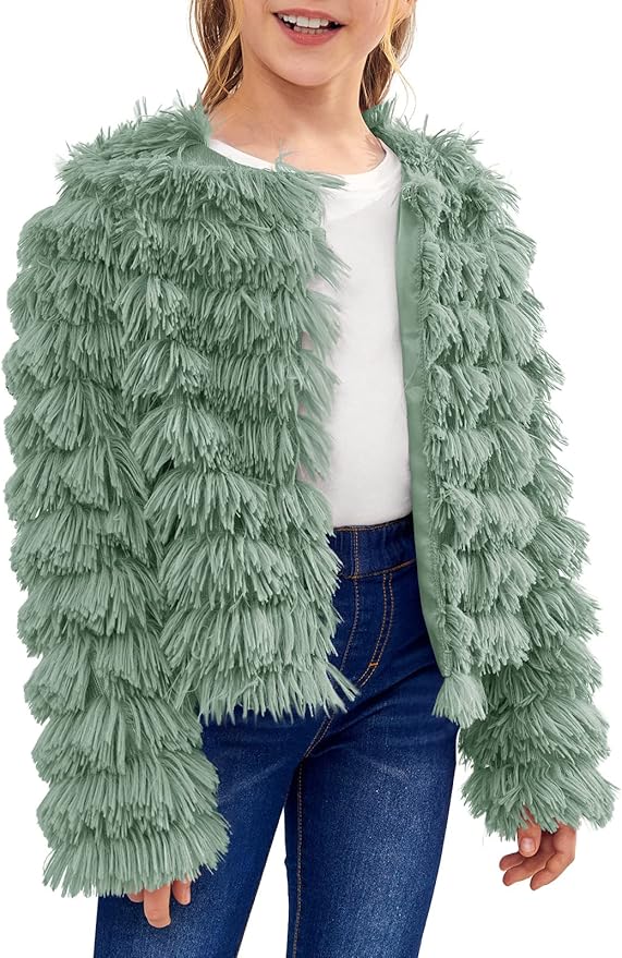 Girls Open Front Cardigan Faux Fur Coat Warm Fuzzy Trendy Winter Vintage Parka Shaggy Party Outerwear Jackets Tops
