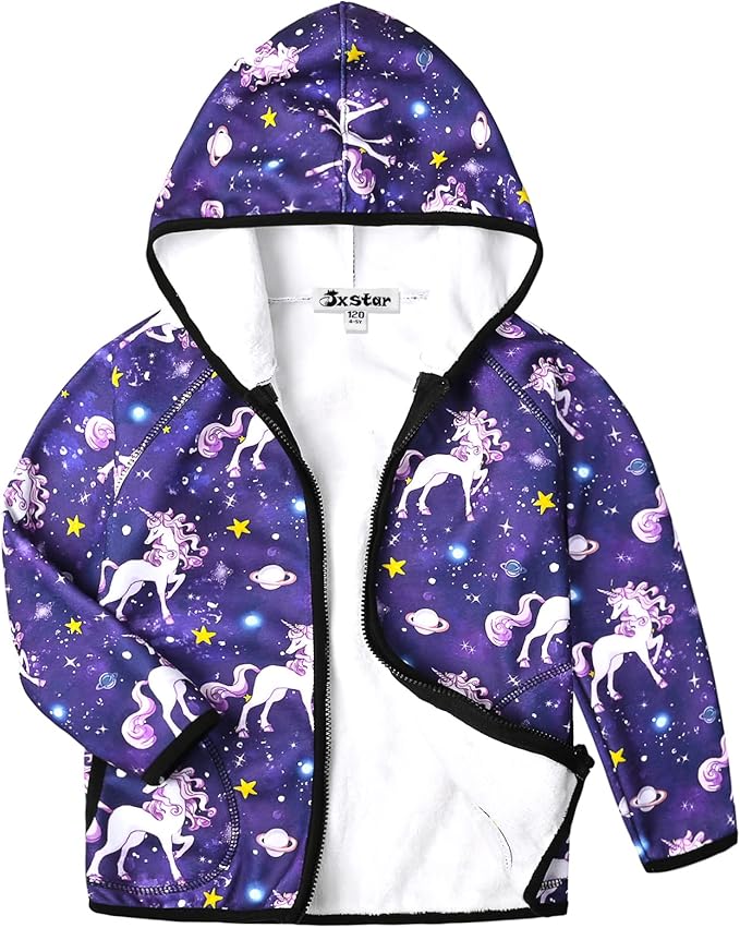 Winter Jacket - Unicorn Fleece Lined Quilted Windbreaker Puffer Jacket (Size: 4-16)